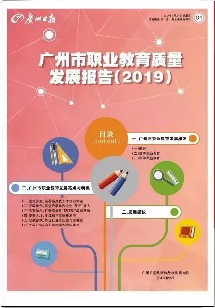 广州日报数据和数字化研究院重磅推出《广州市职业教育质量发展报告(2019)》,该报告系统梳理了广州市职业教育的发展概况,展现出广州推进职业教育现代化发展的成果,以及广州职业院校的亮点与特色。