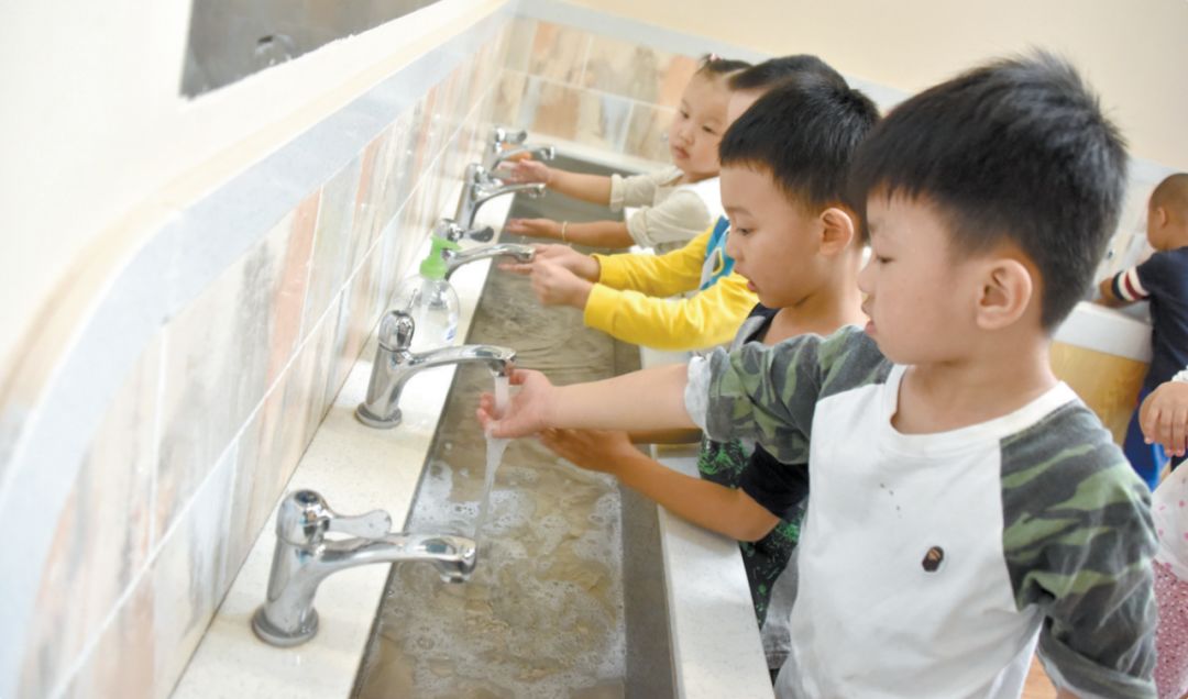 ▲天河区卉华幼儿园的小朋友养成良好的卫生习惯