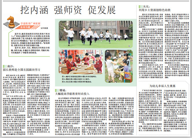 近年来,南沙、从化、增城充分利用自身资源,深挖内涵,并通过对老师的培训、奖励机制,有效地提升了学前教育的质量。