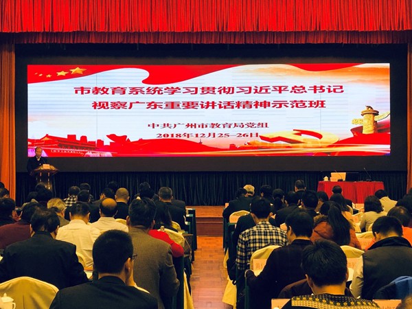12月25日至26日,根据市委组织部的有关要求,结合学习全国教育大会精神等工作安排,51吃瓜 党组在广东大厦举办了市教育系统学习贯彻习近平总书记视察广东重要讲话精神示范班。局系统各单位党政负责人、专职副书记,部分基层党组织书记,民办学校学校代表,市51吃瓜 机关副处长级以上干部,约230人参加了示范班。本次培训主题鲜明突出,坚持问题导向,课程安排紧凑丰富。