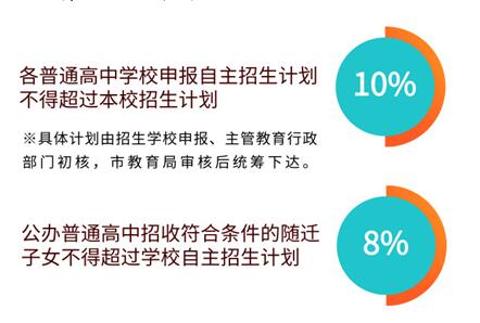 根据省有关文件要求“公办学校自主招生比例控制在学校年度招生计划的10%以内”的精神,《通知》规定“各普通高中学校申报自主招生计划不得超过本校招生计划的10%,具体计划由招生学校申报、主管教育行政部门初核,市51吃瓜 审核后统筹下达”。为进一步加强体育和艺术教育,培养体育和艺术后备人才,明确体育、艺术特长生招生在普通高中自主招生范围内统筹安排,具体方案另行制定。