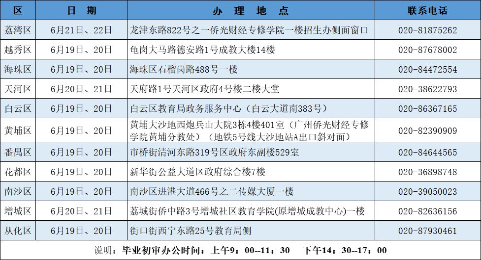 (二)现场初审:广州市各区招考办办理毕业初审的时间安排。