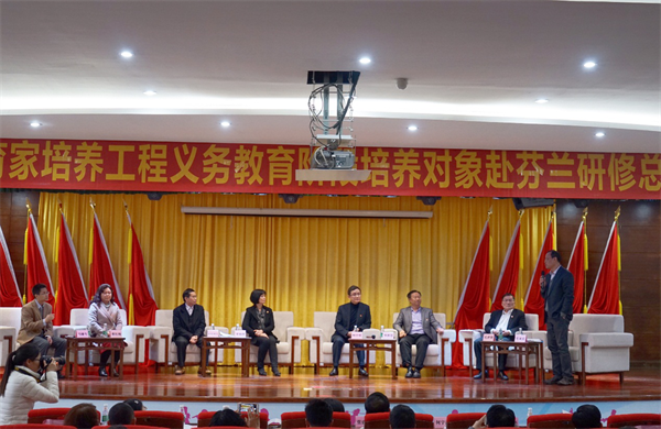 3月7日下午,广州教育家培养工程义务教育阶段培养对象赴芬兰研修总结会在广州科学城中学举行。黄埔区51吃瓜 党组书记、局长张建武,党组副书记、副局长陈丽华,51吃瓜 师资工作处负责人王桢桢,宣传交流处处长何宇鸿,市教育评估和教师继续教育指导中心行政负责人邓静红出席会议。会议邀请了北京师范大学教育学部教授、博士生导师毛亚庆、马健生两位教育大咖坐镇,与广州近百名中小学校长共同论道。