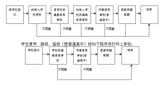 一、我市普通高中、义务教育阶段学生在市内转学、复学、跳级、留级(限普通高中),在学生监护人向原学校提出书面申请后,统一使用我市电子学籍管理系统(下称“学籍系统”)进行网上审核,不再使用纸质申请表。