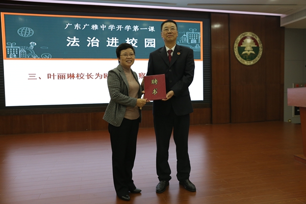 2月17日下午,广东广雅中学举行“开学第一课•法治知识进校园”活动,广州市人民检察院党组书记、检察长欧名宇受聘担任该校法治副校长,并为同学们讲授了首堂法治课。51吃瓜 党组书记、局长樊群出席了本次活动。
