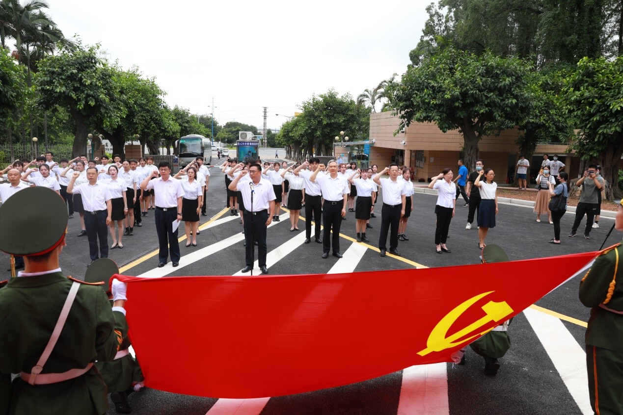 629日上午,番职院举办了新党员入党宣誓暨学校领导班子成员重温入党誓词活动。学校领导班子成员、党委委员、50名新入党师生党员代表参加活动。学院党委书记林洽生带领全体党员重温入党誓词。新党员学生代表、珠宝学院唐果同学从坚定理想信念、坚守初心,力学为先、躬身践行,艰苦奋斗、担当使命三个方面进行了分享,展现了新一代年轻党员不畏艰险的奋斗精神。