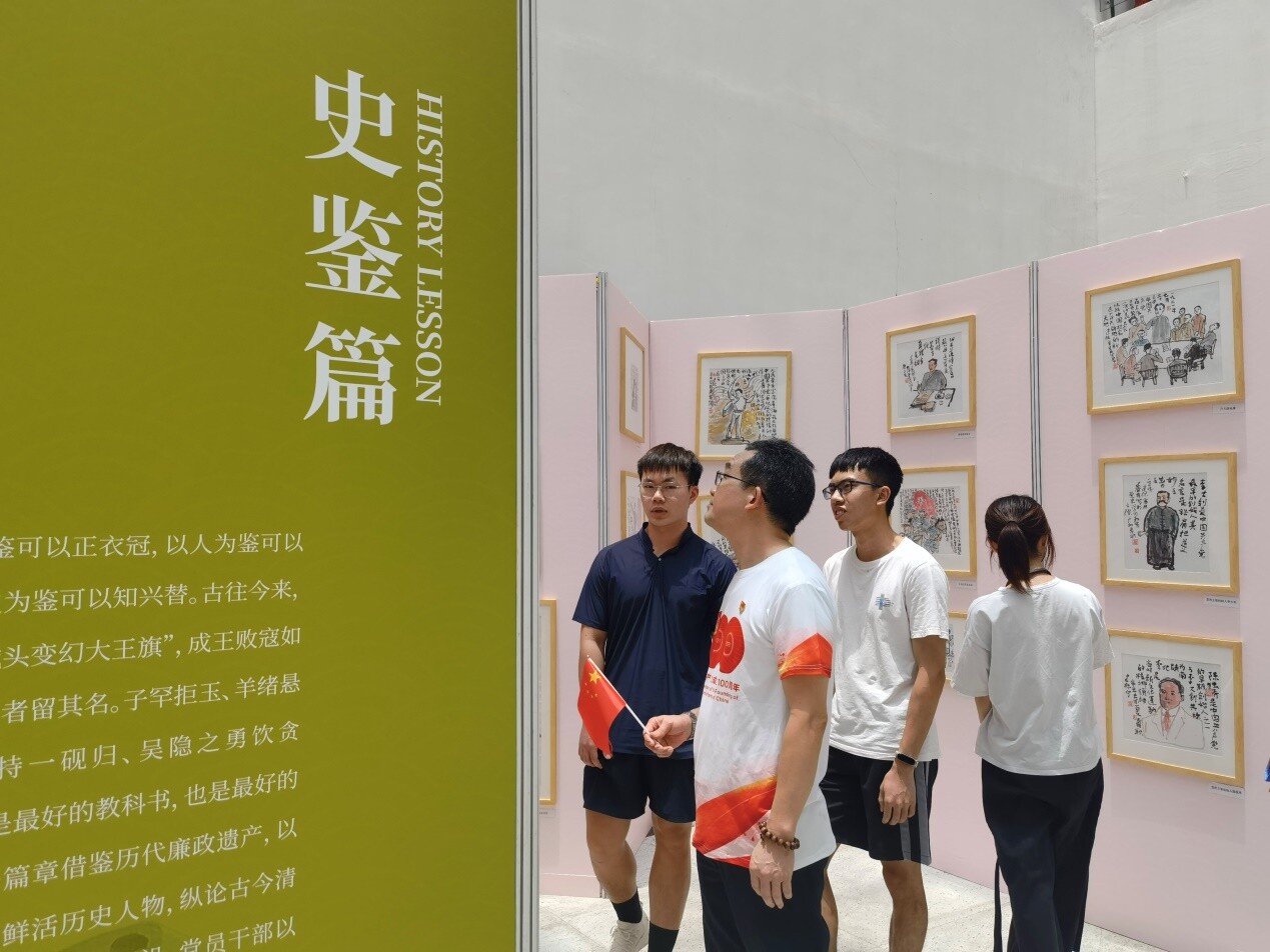 百幅手绘漫画分为“党史篇”“史鉴篇”“警钟篇”“修身篇”4个篇章。寓教于乐的漫画,吸引了诸多师生驻足观看。现场参观的党员干部认为,通过观看这些直白、具体、生动的漫画作品,他们对习近平总书记关于全面从严治党重要的论述有了更深刻的认识,对于进一步提高自身政治判断力、政治领悟力、政治执行力,始终保持永远在路上的冷静清醒和坚韧执着,锤炼忠诚、干净、担当的政治品格有所启迪。